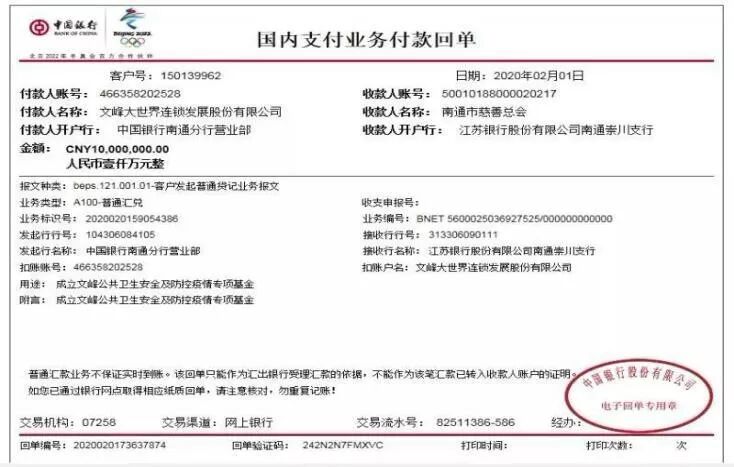 防护疫情我们在行动           新型冠状病毒感染的肺炎疫情发生后,牵动了无数的人的心,社会各界纷纷伸出援手。作为南通本地大型商贸服务企业,文峰大世界连锁发展股份有限公司(以下简称“文峰股份”)积极履行社会责任,高度重视并超前落实疫情防控工作,以实际行动关爱、保障公司员工与顾客的生命安全和身体健康。面对疫情,文峰股份推出多项举措,与合作伙伴共克时艰,并向奋战在防疫一线的医护人员提供帮助,同时,文峰股份旗下千家惠超市,增强采购力量,确保当地粮油、蔬果等生活必需品的市场供应,在全社会树立了良好的社会形象。        文峰股份董事长陈松林表示,文峰股份历来就有济弱扶贫的优良传统,在非典疫情时期也曾慷慨解囊,面对严重疫情,文峰股份更要全力以赴,为社会做出贡献。 慈善捐款一千万元 设立一亿元帮扶资金        突如其来的疫情,对零售行业带来了较为严重的影响,除了部分租金减免,文峰股份更是出资1亿元设立专项帮扶资金,对公司各业态供应商、合作商户给予为期一年的定点帮扶、救助,与商户协力共前,共克时艰。 保障民生稳定物价          出于企业的社会责任度和行业敏感性,预计口罩和防毒杀菌产品市场需求会增大,千家惠超市立即安排采购人员向口罩及防毒杀菌产品合作供应商了解库存情况,并第一时间将所有库存全部进店,在短短3天内从多方渠道采购了15万只口罩,以满足市场需求。        针对疫情,文峰微商城专门策划实施了“文峰安心送”配送服务,并通过直播集中宣传健康防护知识和防疫进展。          在公司整体领导班子前瞻性的战略指导下,文峰股份旗下门店在南通市场上进货早、货源足、价格稳,目前物资供应可以完全满足消费者的需求。          疫情发生以来,文峰股份高度重视,公司领导多次深入一线调研防疫工作,慰问一线员工。        1月26日,股份公司董事长陈松林前往公司各门店慰问奋战在一线的员工。        在文峰大世界南大街店,陈松林听取了门店当班领导对当前经营情况的简析,并仔细查看了1至4楼的防疫、消杀情况。在与现场管理人员的交流过程中,他要求门店在当前疫情防范的关键时期要强化责任意识,严格执行集团规定,保护好员工、保护好顾客、保护好企业的良好声誉,为公司疫情后的经营恢复打好基础。         在文峰城市广场,陈松林着重考察了华为旗舰店,在与员工交流中,他仔细了解了消杀的频率及员工自身的防范保护措施,要求结合目前客流量及经营情况进一步细化员工排班工作,合理制定临时作息规定。         1月28日,文峰股份董事长陈松林和副总经理王钺在千家惠超市总经理曹晖的陪同下再次来到文峰千家惠城广店和吉星店。陈松林一行着重查看了超市内蔬果生鲜和消杀用品等市场需求量大的民生商品,仔细向门店负责人和采购人员了解库存采购的具体情况,并指示在做好门店防疫措施的同时,全力以赴保障超市平价物资的供应。         1月31日下午,文峰股份总经理贾云博及副总经理王钺、成智华陪同集团领导来到文峰大世界南通店和文峰千家惠城广店调研,对春节假期及疫情期间仍坚守岗位的一线员工表示亲切慰问,并对商场的消杀、防护等工作表示肯定。         全民抗疫,众志成城!抗击新型冠状病毒疫情是一场没有硝烟的战争,文峰股份与华夏儿女万众一心,定会取得最后的胜利!武汉加油!中国加油!