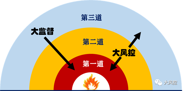 大监督是从第三道防线从外向内延伸,通过第二道防线向第一道防线延伸,实现监督目的。