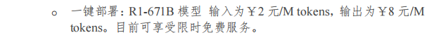 DeepSeek官方分为网页版和移动版,网页版用户点击“开始对话”并注册后即可使用;移动版需通过手机下载注册后使用,两者功能相同。 4.1.1网页版使用 访问链接: https://chat.DeepSeek.com/,可以在任何设备和浏览器打开。之前从未登录过的用户需要进行登陆,使用手机号、微信或者邮箱登陆即可。如图1所示,输入自己的手机号,点击发送验证码,然后可以通过接收到的验证码登录即可。 登录成功后,进入图2所示界面,然后点击“开始对话”就可以使用。 不过需要注意,那就是如何选择V3还是R1模型,可以参考下图。此外还可根据需要,选择是否勾选“联网搜索”。 4.1.2手机版使用 手机版的使用和电脑版基本一样,根据需要是否激活R1即可。唯一不同的是需要在手机安装对应的App。安装方法如下: 方法1:进入DeepSeek官网后,将鼠标移动至“获取手机APP”处,扫描弹出的APP下载二维码(https://download.DeepSeek.com/app/)然后选选择对应的下载渠道即可。 方法2:在手机自带的应用商城中,搜索DeepSeek,点击下载安装即可。 4.2第三方渠道 随着DeepSeek模型迅速走红,官方平台面临访问量激增的压力,经常遇到服务拥堵的情况。不过,国内主流云计算平台已全面接入DeepSeek模型,为用户提供了稳定可靠的替代方案。这些非官方渠道提供了三类模型选择:DeepSeek-V3模型、完整版DeepSeek-R1模型(671B参数)、轻量级DeepSeek-R1模型(参数规模从1.5B到70B不等)。其中,完整版R1模型保留了全部671B参数,能发挥出最佳性能,但对计算资源要求较高,通常需要支付一定费用。轻量级模型则通过知识蒸馏技术,在保持核心功能的同时大幅降低了参数规模,可在普通算力环境下流畅运行,为用户提供了更灵活的选择。 4.2.1硅基流动&华为云 硅基流动与华为云团队联合首发并上线了基于华为云昇腾云服务的DeepSeekR1/V3,推理服务目前支持V3和R1大模型,以及多款R1蒸馏小模型。 在硅基流动的一站式大模型云服务平台SiliconCloud上(网址为:https://siliconflow.cn/zh-cn/),用户注册后可以在网页右侧选择DeepSeek-R1等模型进行体验使用,如图4所示。 4.2.2纳米AI搜索 360宣布在其旗下纳米AI搜索中开通“DeepSeek高速专线”,用户可在手机应用商店中下载并安装“纳米AI搜索”,注册登录后点击底部“大模型”,进入如图5所示左边画面。随后选择“DeepSeek-R1-满血版高速专线”,即可进入图5所示右边画面。接着就可以在下面的输入框中输入你需要的问题了。 4.2.3阿里云 阿里云PAIModelGallery支持用户通过云平台一键部署DeepSeek-V3、DeepSeek-R1模型及其蒸馏版本。用户可以根据业务需求选择部署不同参数量的模型。具体请参考链接: https://help.aliyun.com/zh/pai/user-guide/one-click-deployment-DeepSeek-v3-model 4.2.4百度智能云 百度智能云提供两种使用DeepSeek模型的途径:一是在模型广场调用DeepSeek的V3和R1模型的API;二是在体验中心与这两款模型直接对话。其使用网址为: https://cloud.baidu.com/product-s/qianfan_modelbuilder。 4.2.5火山引擎 火山引擎支持V3/R1等不同规模的DeepSeek开源模型,用户可以通过两种方式使用这些模型。一是在火山引擎机器学习平台veMLP中部署,适用于自己进行模型定制、部署、推理的企业;二是在火山方舟中调用模型,适用于期望通过API快速集成预训练模型的企业,目前已经支持4个模型版本。其访问的网络地址为: https://www.volcengine.com/product/ark 4.2.6其他平台 (1)无问芯穹(目前提供蒸馏版R1):https://cloud.infini-ai.com/genstudio (2)国家超算互联网平台(目前提供蒸馏版R1):https://chat.scnet.cn/ (3)腾讯云TI-ONE: https://console.cloud.tencent.com/tione/v2/aimarket (4)秘塔AI搜索:https://metaso.cn/ 4.3 本地部署 这是最保险的一种方法,即在本地电脑上安装DeepSeek。只要电脑正常运行,用户就可以随时使用DeepSeek。 但这种方法有一个缺点,那就是一般来说个人电脑的性能有限,只能装“蒸馏版”的DeepSeek,这个版本的DeepSeek需要占用的电脑资源要比满血版少的多,同样性能也差不少。 这种方式适合的人群为:1.需要保证数据安全,不能联网;2.对于性能的忍受度较高;3.只需要普通的AI功能。 如果你符合上述描述,那你可以选择本地部署,方法其实非常简单。 4.3.1 下载ollama Ollama是一个集成主流AI大模型的免费平台,用户可以通过访问https://ollama.com/下载并安装。 4.3.2合适版本安装 安装Ollama后,用户可以选择下载DeepSeek的不同版本,其中R1和V3是较为推荐的版本。 这两个的不同点为R1提供了从1.5B到671B不同大小的模型,而V3只有671B,而671B需要的电脑性能单个电脑几乎不可能满足,所以建议大家可以直接安装并且部署R1模型。 DeepSeekR1的链接: https://ollama.com/library/DeepSeek-r1:7b 可以看到R1有7个版本,其中最小的是1.5b,它需要的内存大小为1.1GB,这个要求几乎所有的电脑都可以满足,可以作为尝试。 4.3.3输入安装代码 这一部分需要一些基础的编程知识。Windows用户可以通过搜索打开命令行,而Mac用户则需要打开Terminal,界面如下。 然后再返回Ollama页面,选择1.5b这个模型,相对应的代码会自动更新,可以点击复制按钮一键完成复制操作。 复制并粘贴代码成如下方式,然后回车键即可。 安装速度取决于网速和所在地区。1.5B的模型通常可以在5分钟内完成安装,安装界面如下,箭头所指的位置是输入问题的地方。 4.3.4测试部署模型 使用方法非常简单,用户只需输入问题并等待输出结果即可。 1.5b的效果受限于模型大小,性能不会很好,可以