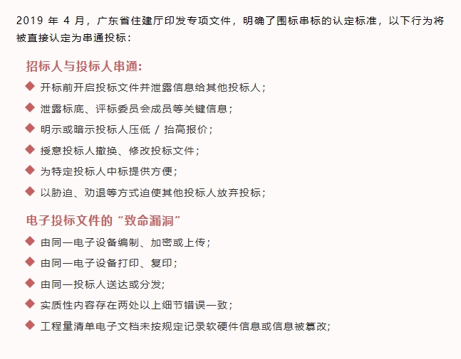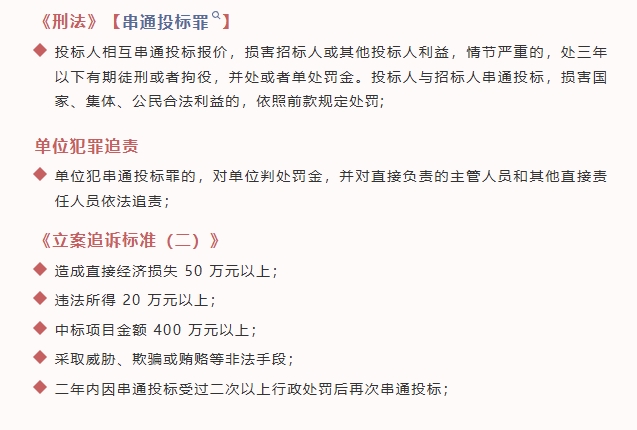 招投标本应是衡量企业实力的 “公平赛场”,是保障项目质量的 “制度基石”。然而,一些投机不法分子却通过 “围标串标” 的暗箱操作,让优质企业错失公平竞争的机会,更给项目质量和市场秩序埋下重重隐患。今天,我们就来揭开围标串标的神秘面纱,看懂它的危害与防范之道。 02 什么是围标串标? 围标串标,是指在招投标过程中,投标人之间或投标人与招标人私下串通,通过不正当手段操纵投标结果的行为。简单来说,就是少数人通过私下勾结,提前 “预定” 中标结果,让招投标失去了原本的公平性和竞争性。 陪标围标:一家企业实际投标,其他企业配合 “陪跑”,制造竞争假象。就像舞台上的 “托儿”,看似热闹的竞标实则早已内定。 轮流坐庄:几家企业私下约定 “排期表”,轮流中标不同项目,形成利益联盟。你中标这个工程,我拿下那个项目,彼此心照不宣。 内定中标:招标人与特定投标人提前串通,通过泄露标底、设置倾向性条款等方式,为 “关系户” 铺路。比如在招标要求中刻意加入某企业的独特资质,让其他企业望而却步。 价格同盟:投标人私下协商报价区间,故意抬高或压低价格,确保某家企业以 “最优价格” 中标。看似合理的报价,实则是精心设计的数字游戏。 03 法律红线 我国法律对围标串标行为早已明确禁止,违者将面临严厉的刑事处罚: 04 如何认定围标串标? 05 围标串标的危害 围标串标的四大危害,每个都关乎你我 1 让真正有技术、有实力的企业被排挤,形成 “劣币驱逐良币” 的恶性循环,最终导致行业整体水平下滑。 串标形成的虚高报价,最终由业主单位买单,造成资源的浪费。 利益输送、权钱交易等行为随之滋生,损害国家和集体利益,败坏行业风气。 中标企业可能缺乏实际施工或生产能力,为节省成本偷工减料,给工程质量和安全生产埋下重大风险。