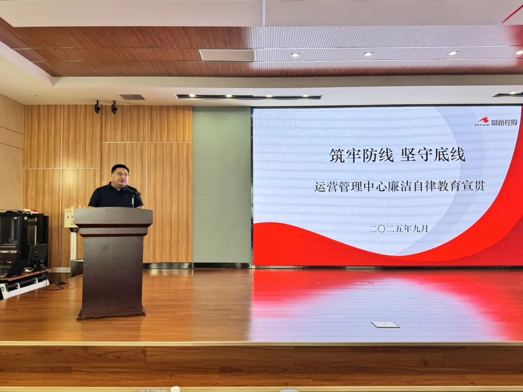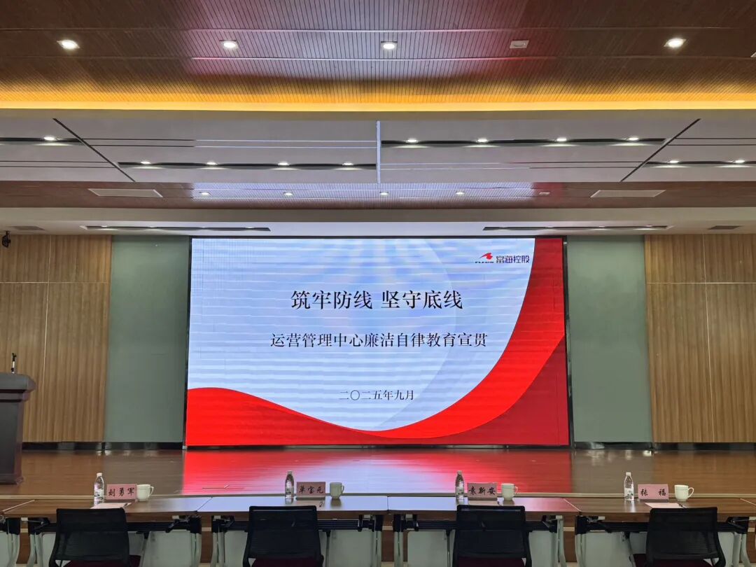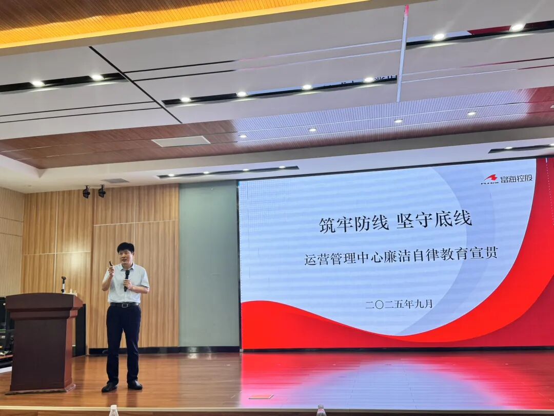 为进一步强化廉洁文化建设,营造风清气正、廉洁高效的工作环境,2025年9月6日上午,富海控股运营管理中心于富海物流举办以“筑牢防线、坚守底线”为主题的廉洁自律宣贯会议,人力行政中心总经理刘勇军、运营管理中心总经理单宝元及中心全体员工出席会议。