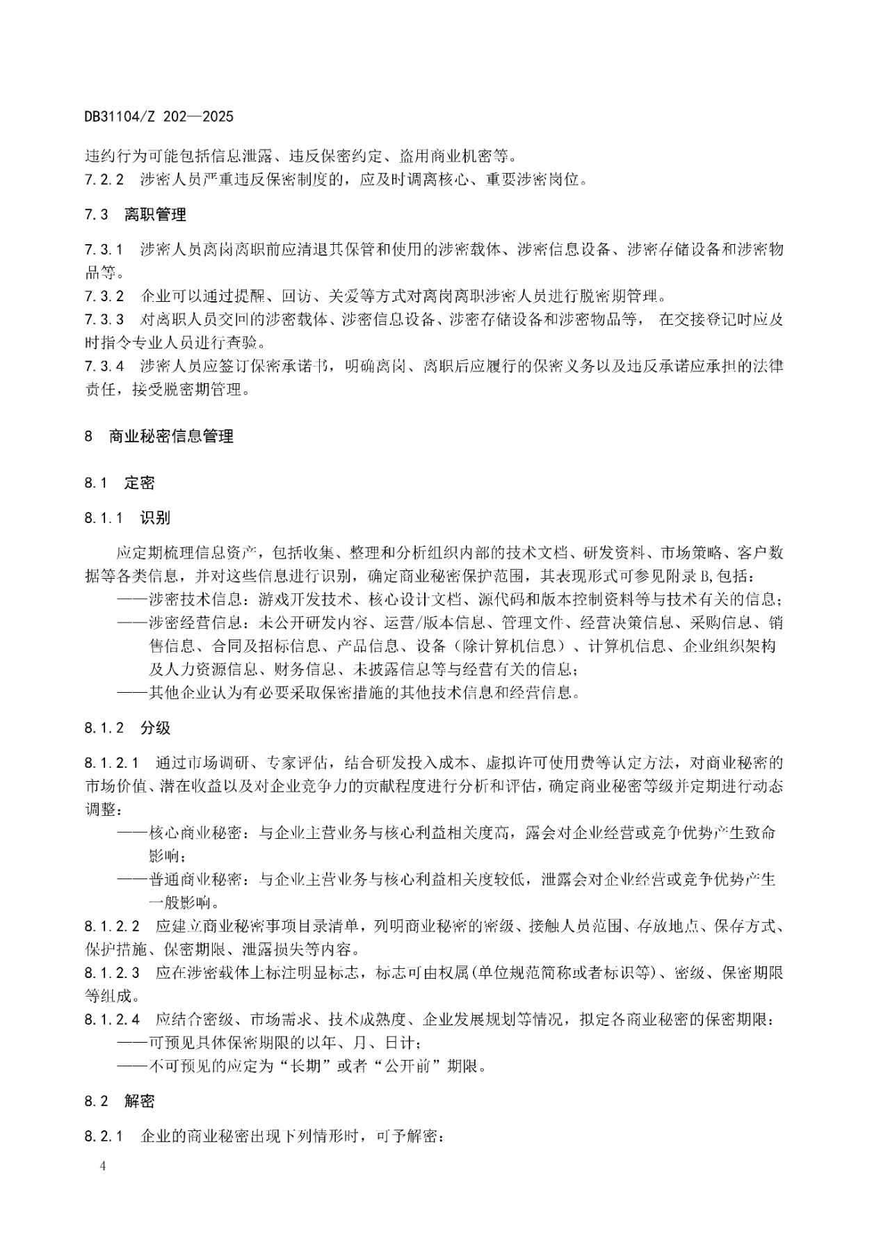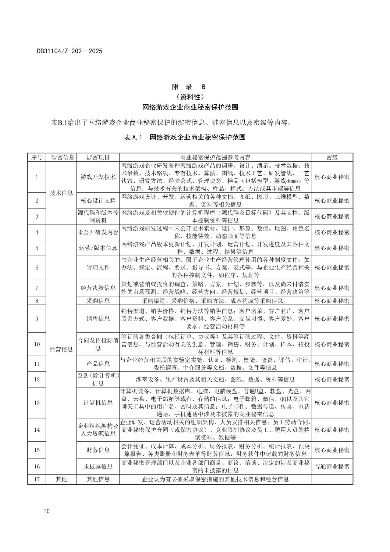 全国首个网络游戏领域商业秘密保护标准发布。劳动报记者陆燕婷 摄影 10月14日,《网络游戏企业商业秘密管理规范》正式发布实施,作为全国首份网络游戏领域商业秘密管理规范的标准化指导性技术文件,该文件在上海市市场监管局的支持和指导下,由徐汇区市场监管局联合上海市标准化协会、徐汇区游戏企业版权保护联盟共同起草,标志着徐汇区在知识产权保护方面迈出关键一步,为徐汇区打造国家知识产权保护高地建设注入强劲动力。 首次系统界定商业秘密的特殊范畴 长期以来,商业秘密保护存在“通用规范性多、行业适配性弱”的困境。而当未公开的角色泄露,当核心玩法设计被提前曝光,网络游戏企业又难以守护自身的“创新命脉”。 徐汇区市场监督管理局综合执法大队在进行网络游戏企业商业秘密管理规范案例分享时,披露了“董某侵犯商业秘密案”。当事人董某为江苏某校的在校学生,其利用境外非法用户提供的OSS链接,借助服务器漏洞,查阅下载某知名游戏企业未公开发布的游戏文件。文件为“2022年下半年游戏美术类工作述职作品集”,包含游戏人物形象、环境场景等经营性信息。获取涉密内容包括游戏人物形象设计、游戏环境场景图纸、游戏场景交互设计方案、游戏玩法概念图等。董某非法获利1513.5元。 上述案件中,当事人董某的行为构成了《中华人民共和国反不正当竞争法》(2019年版)第九条第一款第(一)项“以电子侵入手段获取权利人的商业秘密”之规定,徐汇区市场监管局对董某作出没收违法并予以罚款的行政处罚。 网络游戏企业商业秘密管理规范案例分享。劳动报记者陆燕婷 摄影 徐汇区市场监管局相关负责人指出,游戏“剧透”是近年游戏行业顽疾,严重打击创作者热情,影响游戏产业的健康发展。 据介绍,此次发布的《网络游戏企业商业秘密管理规范》,作为全国首个针对网络游戏行业的标准,精准聚焦网络游戏行业特性,首次系统界定了网络游戏企业商业秘密的特殊范畴,将经营信息细化至未公开角色名称、技能特效、动态动画等研发内容,技术信息则涵盖游戏开发技术、核心设计文档、源代码和版本控制资料等,并建立密级划分与动态调整机制,通过标准化手段为网络游戏企业提供一套制度化、全周期的商业秘密保护实施方案,也为数字文创领域提供了可借鉴的标准化样本。 “标准充分考虑了游戏领域技术和经营信息可能涉及的保护内容,解决了行业中长期存在的商业秘密属性认定难的痛点,使得我们游戏企业能够从被动维权迈向主动完善企业内部商业秘密保护体系,守住核心竞争优势。”某游戏企业负责人表示。 从“被动维权”转向“主动防护” 近年来,徐汇区游戏产业蓬勃发展,聚集了米哈游、鹰角、莉莉丝等国内外知名的游戏企业,精品游戏迭出,游戏人才精英集聚。与此同时,网络游戏企业在知识产权保护方面的需求也日趋增长。今年“4·26”世界知识产权日,徐汇区市场监管局联合徐汇区法院、徐汇区检察院、徐汇公安分局等部门发布了全国首份面向网络游戏行业的商业秘密保护指引,在细化游戏行业商业秘密的范围、破解游戏行业商业秘密定损难题等方面提供了初步解决方案。 此次发布的《网络游戏企业商业秘密管理规范》则在此基础上进一步升级成标准化指导性技术文件,为网络游戏行业筑牢标准根基,推动企业从“被动维权”转向“主动防护”。 《网络游戏企业商业秘密管理规范》将行政监管要求与企业内部管理深度融合,明确市场监管部门在侵权查处中的衔接流程,推动“企业主责、监管引导、司法保障”的协同治理,为破解商业秘密“取证难、维权慢”问题提供了上海方案。 “此次标准的制定以企业实际需求为引领,从前期调研到条款起草,再到后期论证,企业全过程参与,是政企协同推进标准落地的创新典范,在实践中探索出了‘企业提需求、政府搭平台、专业做支撑’的标准化工作新模式。”参与到此次标准制定过程的某企业负责人如是说,这种深度协同模式让标准更贴合行业实际,大幅降低了企业落地难度,让抽象的“保密要求”真正转化为可执行、可落地的操作指南。 《网络游戏企业商业秘密管理规范》全文