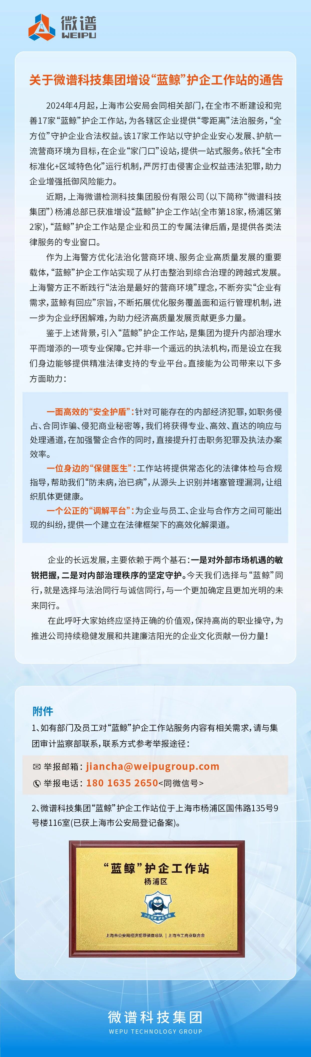 关于微谱科技集团增设“蓝鲸”护企工作站的通告