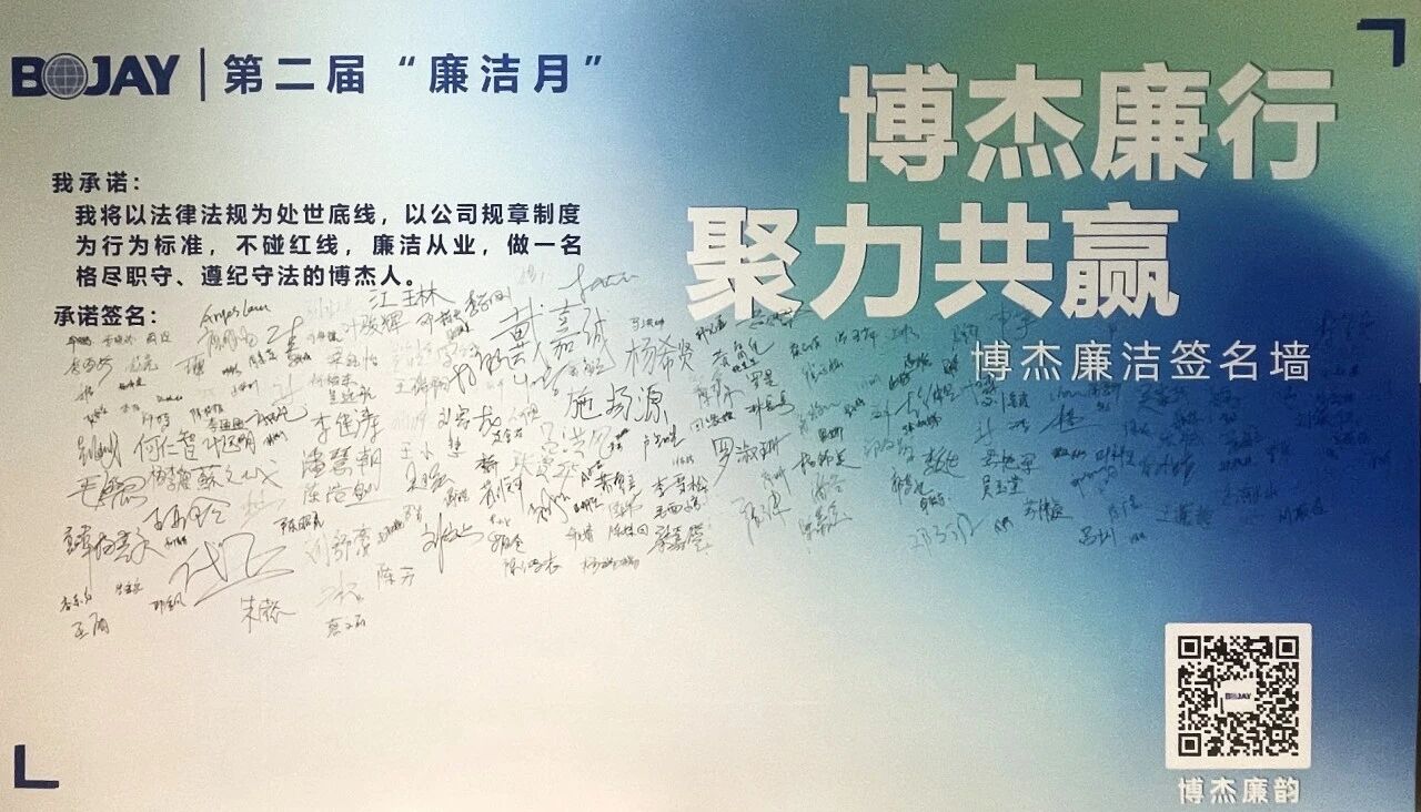 廉洁之路,步履不停,博杰同行,未来共赢。让我们携手共筑风清气正的企业环境,共同书写博杰聚力共赢的精彩篇章,让共赢之果惠及每一位博杰人。