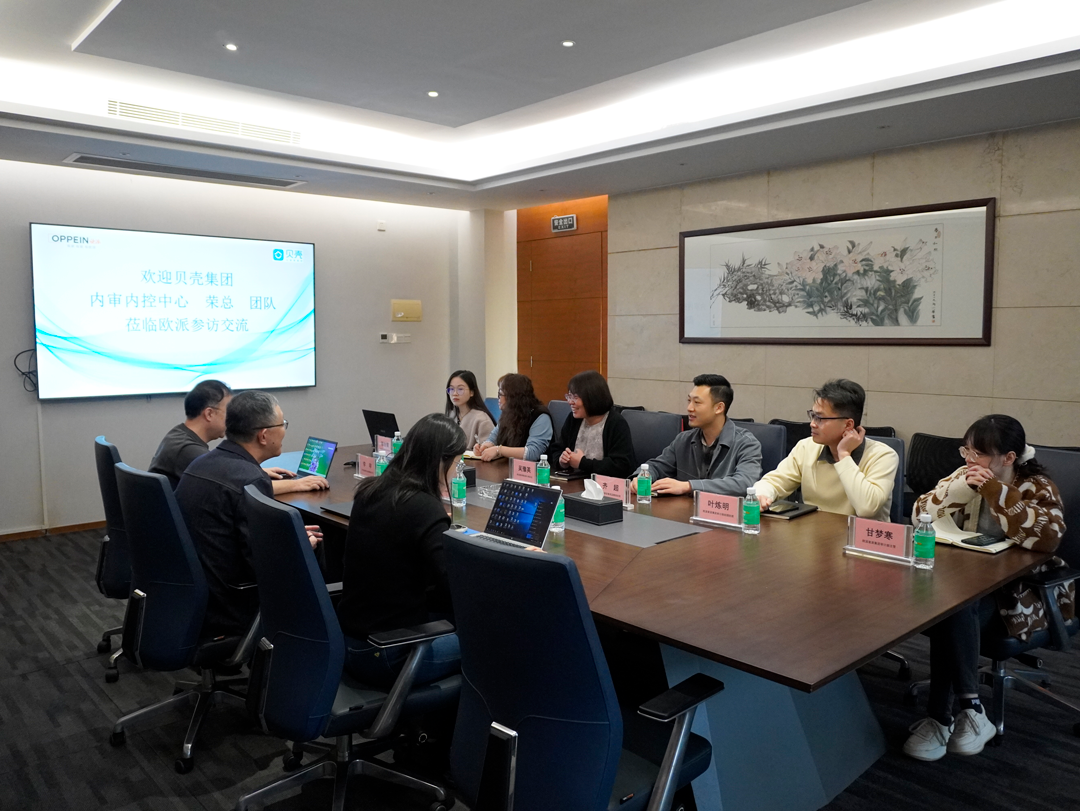 11月27日,贝壳集团内审内控中心总经理荣磊携团队成员余薇茜、职业道德建设中心负责人李申一行赴欧派家居集团参观交流。欧派家居审计部总监吴豫英、审计专家李欣、监察部经理齐超等人陪同接待并参与交流。
