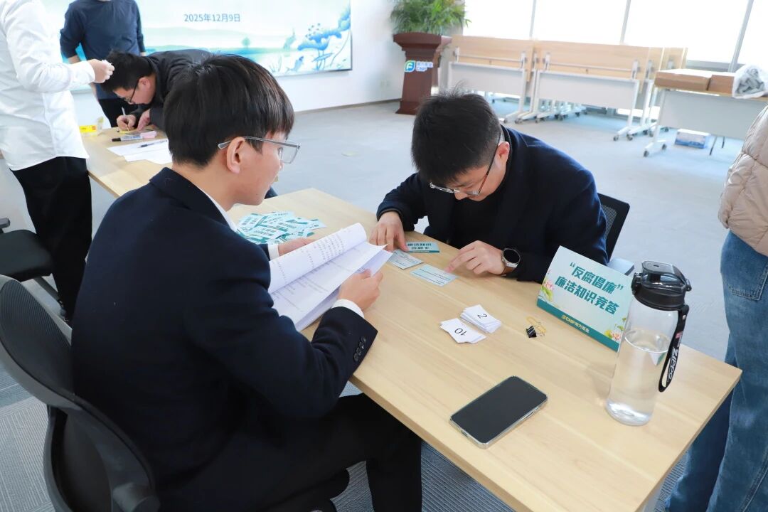 总部组织开展“铸牢反腐金钟罩,共护清风新生态”国际反腐败日主题活动。活动共设置四个环节,员工们通过“共话清廉”书写廉洁承诺,“反腐倡廉”知识竞答重温廉洁知识,“诵廉传意”读书会深化纪律规矩意识,“划说反腐”你划我猜趣味传播廉洁理念,寓教于乐、寓学于趣,营造了崇廉尚洁的浓厚氛围。