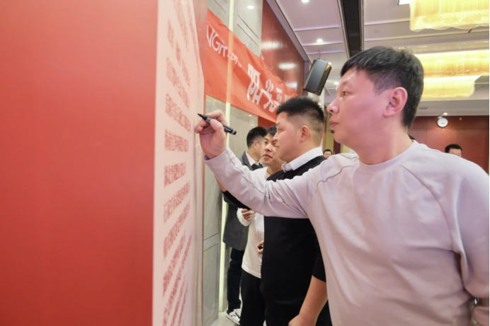 在大会最庄严的环节,全体与会人员在风控监察中心总监冯超华的带领下,共同起立宣誓。随后,公司领导与全体供应商代表依次在《廉洁共建倡议书》上郑重签名,将“廉洁共建”的共识与承诺,共同铭刻于这份庄严的契约之上。