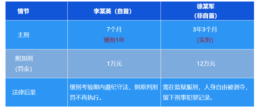 2026年1月22日,佛山市三水区人民法院判决日丰佛山原采购专员徐某军在职期间利用职务便利,收受供应商回扣,犯非国家工作人员受贿罪,判处有期徒刑三年三个月,上缴赃款并处罚金人民币十二万元。 02 采购专员李某英判决结果 2026年1月19日,佛山市三水区人民法院判决日丰佛山原采购专员李某英在职期间利用职务便利,收受供应商回扣,犯非国家工作人员受贿罪,鉴于李某英认罪态度好且具有自首情节,法院酌情判处有期徒刑七个月,缓刑一年,上缴赃款并处罚金人民币一万元。 自首/非自首判决书区别 公司态度与立场 近年来,集团持续加大反腐败力度,在反腐路上“一步不停歇”,对腐败分子“半步不退让”。集团于2018年加入企业反舞弊联盟并当选理事单位,对触犯法律的腐败分子,个人信息将会被录入协会“黑名单”,超过1600家协会成员公司将拒绝录用,污点伴随终身。 勤拭“明镜”,不惹尘埃; 护我“金匮”,毋令缺损。 望全体员工引以为戒,诚实劳动、遵纪守法,积极践行“以德为邻、天道酬勤”的企业文化。 若发现违规问题 , 欢迎反馈 日丰企业集团审计与法务部举报联系方式: 举报邮箱:rfsjb@rifeng.com 举报电话:0757-82236192 邮寄地址:佛山市禅城区祖庙路16号日丰大厦4楼审计与法务部 微信举报:“廉洁日丰”公众号页面右下角点击“举报通道”