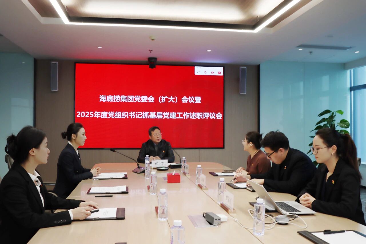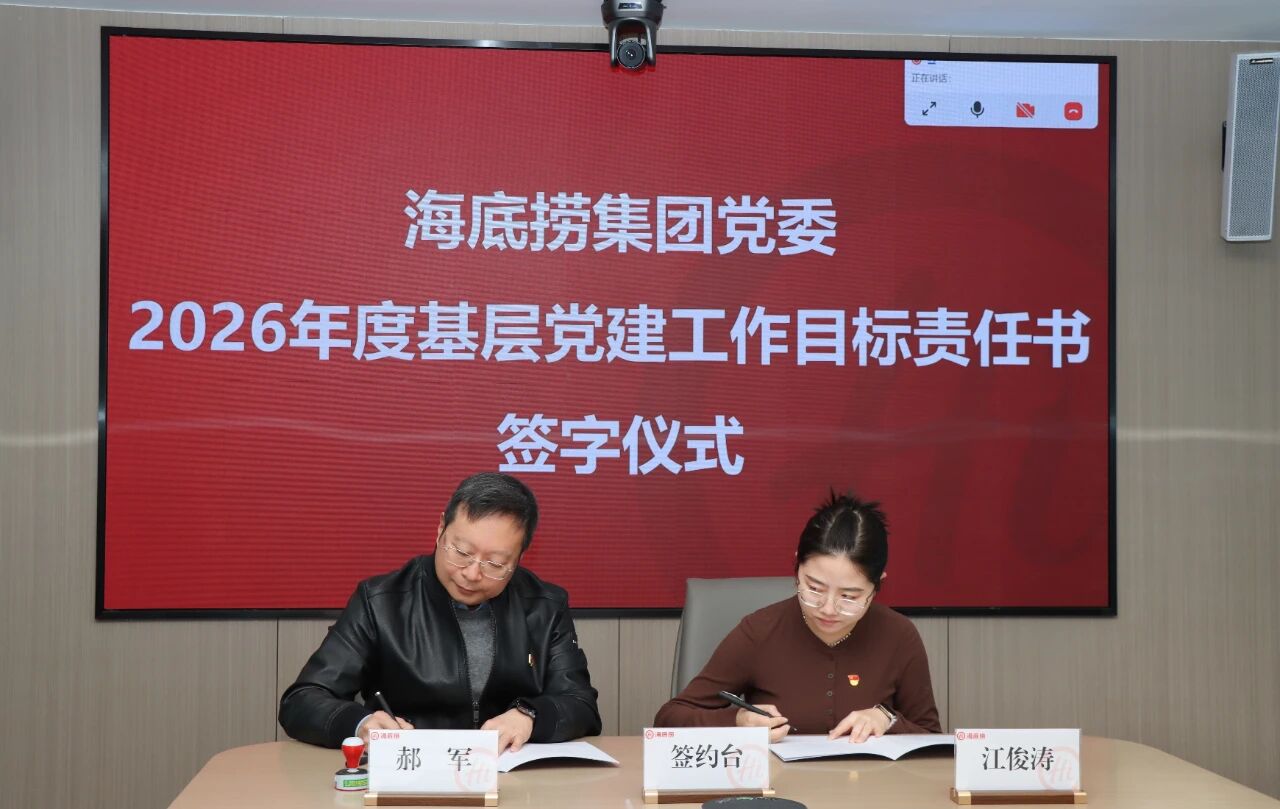 会议现场 会上,党委副书记徐慧彬传达学习了习近平总书记近期重要讲话精神和上级有关会议精神。第六党支部书记张超、海鸿达(北京)第十四分公司党支部书记杨云晓、海南流动党员工作站主任许祝才就抓基层党建工作进行口头述职,其余党支部书记(流动党员工作站主任)进行书面述职,与会人员对述职对象进行了评议。 此次述职评议是在集团上下深入学习贯彻党的二十届四中全会精神、中央经济工作会议及各级相关会议精神、“十五五”规划起步之年的背景下召开的,对于进一步推动集团以高质量党建引领企业高质量发展意义重大。郝军对述职同志逐一点评,并与基层党支部书记(流动党员工作站主任)签订了2026年度基层党建工作目标责任书,述职结束后,郝军作了《品牌领航强覆盖 融合赋能促发展,以红色引擎赋能海底捞持续健康发展》的讲话,肯定过去一年集团党建工作取得的成效,对做好新年度重点工作提出要求。 签订2026年度基层党建工作目标责任书 回望2025: 固本培元,积厚成势,党建工作在引领中书写精彩答卷 2025年,在上级党组织的坚强领导下,集团党委紧紧围绕“在党的领导下,发展是非公企业核心职责”理念,深化“红海先锋”党建品牌创建,全面落实“两个覆盖”攻坚工作,不断丰富“1423”党建工作体系,将党的政治优势和组织优势转化为企业的发展优势、创新优势和服务优势,连续7年上榜“全球餐饮品牌价值25强”,集团党委被四川省委“两新”工委评为“2024年四川省新兴领域先进基层党组织”,荣获第七届全国文明单位称号。创新构建党委带支部(流动党员工作站、群团班子)、党员带员工的“双带”学习模式,各大区、门店、职能部门和各党组织开展各类党建活动6237场次,召开“向‘新’破局 以‘质’赋能——以‘两个覆盖’质效激活非公党建新动能”党建工作专场会;优化党组织体系,“三维赋能建强组织体系,助力企业高质量发展”入选成都市新兴领域党建典型案例。加大在店经理、一线优秀员工、优秀农民工中发展党员的力度;成立海底捞集团团委、妇联组织,完善党群联动机制,亲情化制度持续推进;扎实开展深入贯彻中央八项规定精神学习教育,开设“廉规微课堂”,组织党员赴驻地法纪教育基地参观见学1200余批次;推动党建与业务从“物理结合”迈向“化学融合”,推行“党员先锋岗”创建活动,党员攻关小组牵头推进“红石榴”计划与“智桥工坊”建设,推动供应链智能化升级;参加省工商联“2+2”托底性帮扶行动;捐赠85万元升级改造简阳市三星镇胜天村党群服务中心,为14名成都市村级党组织书记后备力量搭建实训平台,捐赠10万元助力简阳市“大思政课”主题活动,支持开展“暖新春·过年在成都”新就业群体关爱活动,为西藏日喀则地震捐款150万元,为香港大埔火灾捐款400万元、方便速食类物资1200余箱,全年公益投入849万元 谋划2026: 锚定目标,聚焦深化,融合赋能再启新篇 2026年是实施“十五五”规划的开局之年,是海底捞深化创新驱动、推进高质量发展的关键之年。集团党委将深入贯彻落实党的二十届四中全会精神,聚焦集团生产经营中心工作,深入推进争先创优党建“品质提升年”行动,推动党建工作与生产经营深度融合,实现“组织有活力、活动有成效、党员有作用、服务有实效”的目标,为实现海底捞高质量发展提供坚强组织保证。强化政治建设,筑牢企业发展“压舱石”,组织广大党员深入学习贯彻党的二十大和二十届历次全会精神,做好集团党委换届工作,召开党员代表大会;深化理论武装,把稳思想引领“方向盘”,持续拓展“线上+线下”立体学习体系;夯实组织根基,建强攻坚克难“先锋队”,以争先创优为导向,深化“1423”党建工作体系,落实基层党组织标准化、规范化建设,规范党组织主题党日活动流程;严明纪律规矩,筑牢清廉从业“防火墙”,构建“线上+线下”监督体系,深入推进清廉海底捞建设;凝聚党群合力,共绘企业发展“同心圆”,推动群团活动与党建活动同步谋划、同步开展;聚焦融合赋能,当好促进发展“助推器”,推动“红石榴”计划、“智桥工坊”项目落地见效,积极参与乡村振兴、基层治理、社区慰问、环保公益、文明创建、暖“新”服务等活动,助力城乡融合发展。 线上参会人员 聚力2026: 狠抓落实,善作善成,以过硬担当确保党建工作任务落地生根 做好2026年党建工作,需要全体党员和党务工作者以“功成不必在我,功成必定有我”的境界和担当,压实责任,以更高标准、更实作风、更硬举措推动各项任务落地见效。 ◆ 要强化政治担当,把牢“方向盘”。“心有所信,方能行远。”全体党员要深刻认识党建工作对企业发展的引领作用,始终把政治建设摆在首位,坚决贯彻党中央决策部署和上级党组织要求。各党支部书记、流动党员工作站主任切实履行第一责任人职责,牵住责任制这个“牛鼻子”,严格落实“一岗双责”,以“钉钉子”精神,一锤接着一锤敲,确保党委决策部署在基层一线不折不扣、见到实效。 ◆ 要坚持融合思维,找准“结合点”。坚持问题导向、目标导向、结果导向相统一,坚决摒弃党建与经营“两张皮”思想,深刻把握党建与业务“一体两面、相辅相成”的辩证关系,找准党建与业务的结合点、发力点。各支部、流动党员工作站要结合门店生产经营实际,创新党建载体,