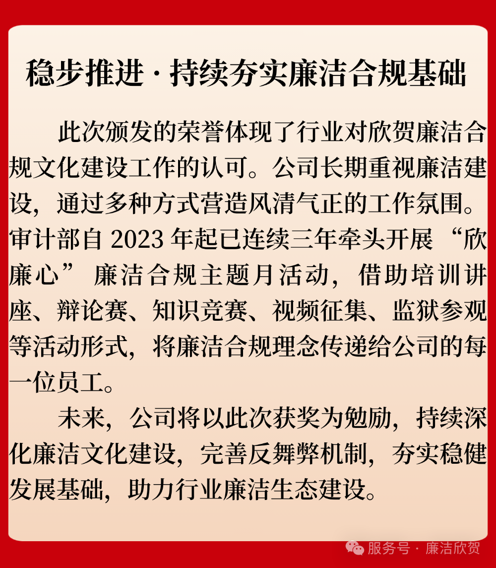 廉洁欣贺 | 欣贺廉洁文化建设成果获联盟表彰
