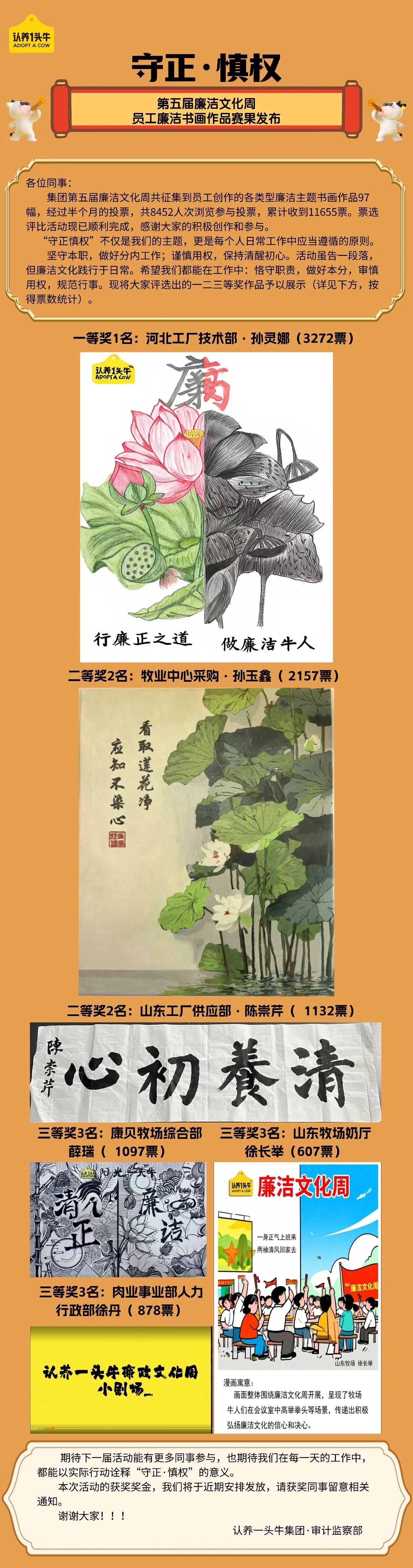 认养一头牛|第五届廉洁文化周员工廉洁书画作品赛果发布