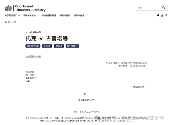 2026 年 1 月 30 日,伦敦高等法院的判决书,给全球大宗贸易行业上了一课。