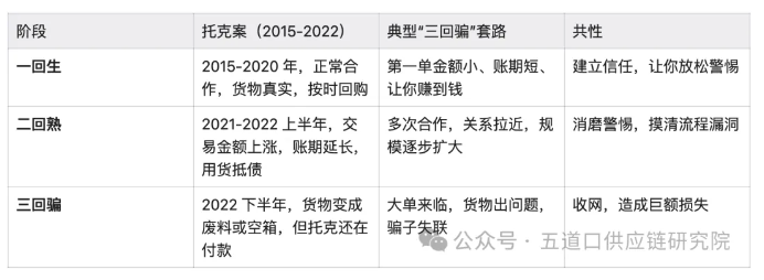 前几天,我写过一篇标题为,一回生,二回熟、三回骗的文章,我们再回头看看托克的这个案例,正好符合这篇文章。