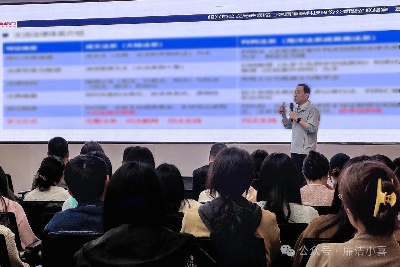 为全面提升全体员工法律风险防范意识与廉洁自律能力,强化企业廉洁合规管理体系建设,2026年4月,喜临门健康睡眠科技股份公司监察委员会针对公司财经管理中心、流程信息中心、经营管理中心关键人员开展了以 “明底线、知敬畏、守廉洁” 为主题的廉洁合规专项培训会议。