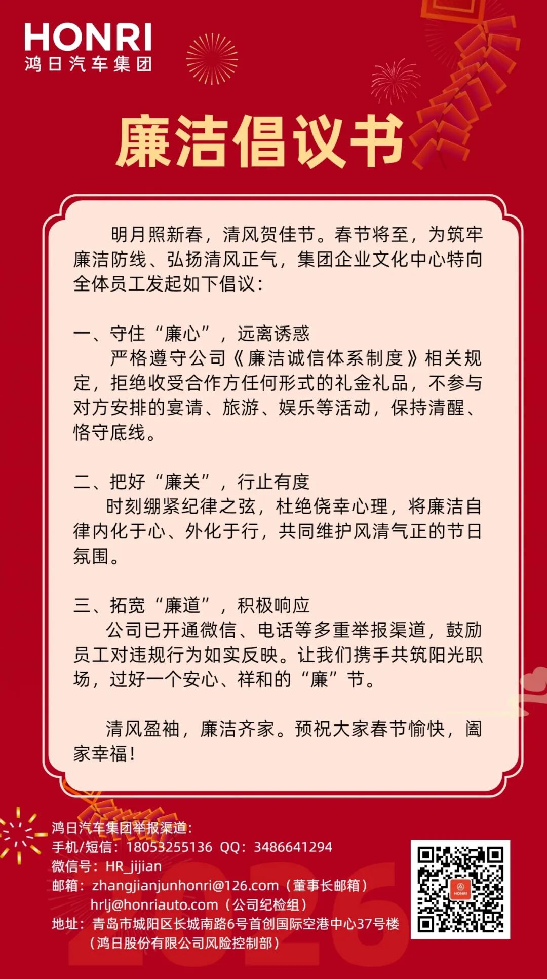 鸿日汽车 | 廉洁倡议书