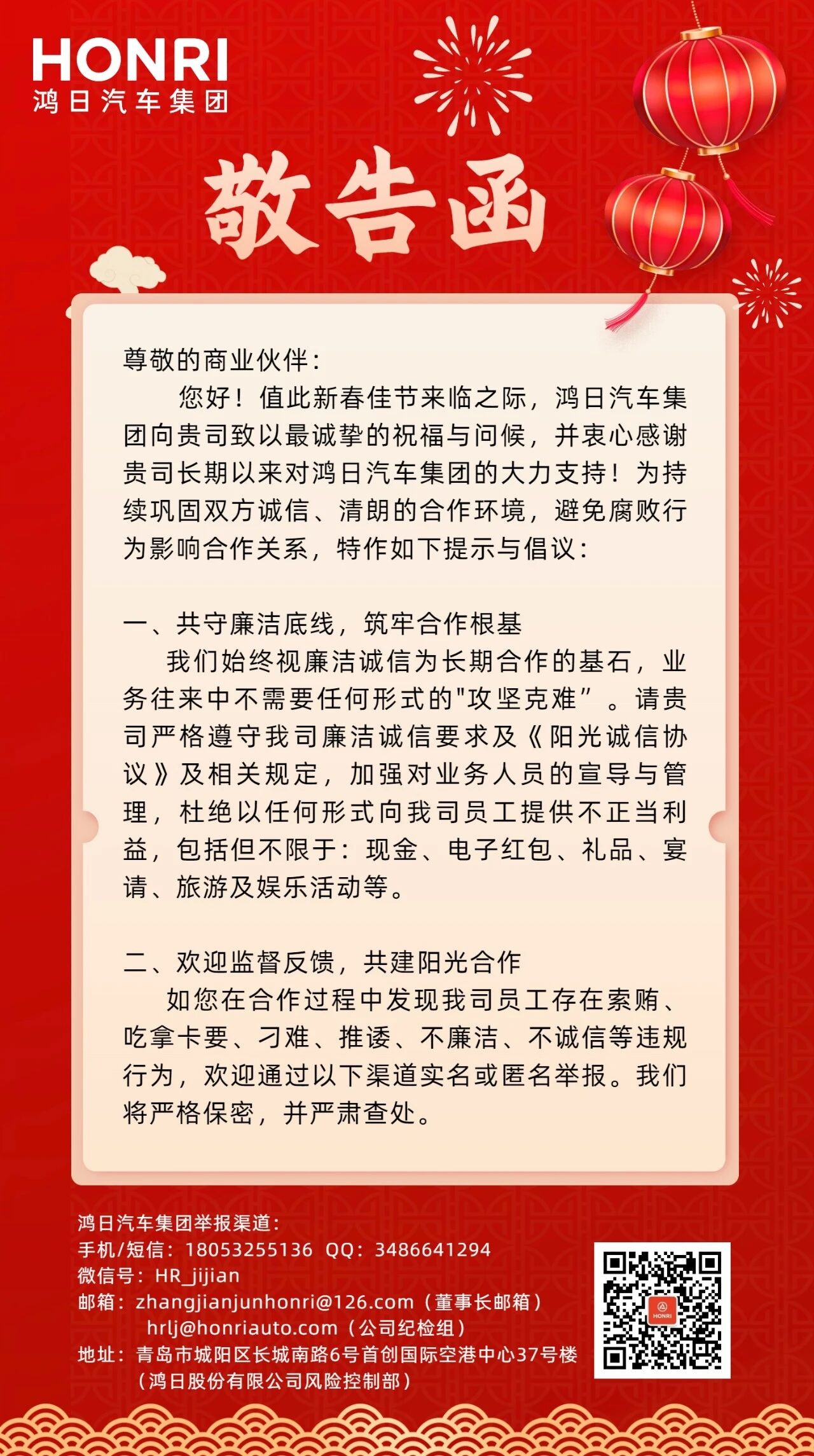 鸿日汽车 | 商业伙伴敬告函