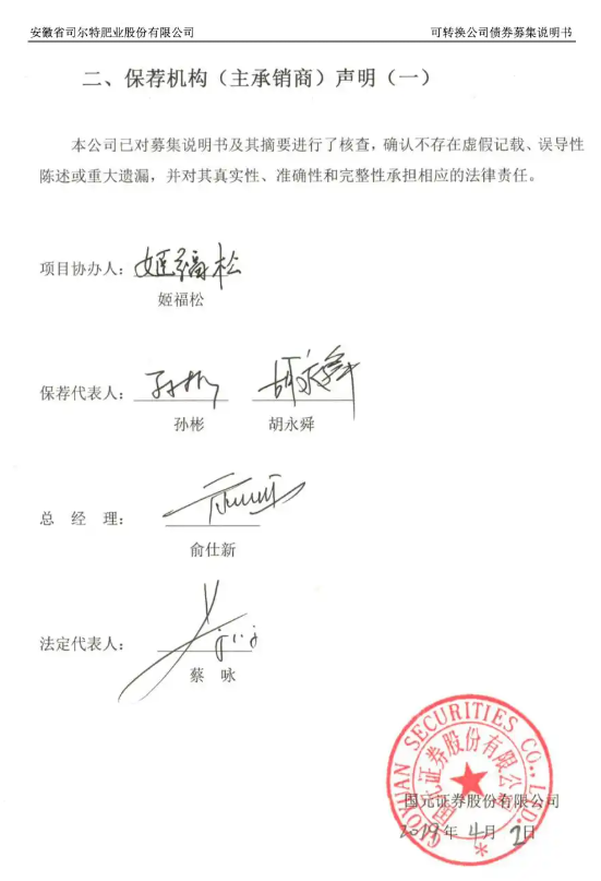 上述提到的4类涉嫌犯罪事实中,包含虚构尿素采购交易、虚构有机肥销售等行为。孙彬参与的 2015年定向增发项目期间,司尔特经营范围尚未涵盖有机肥;直至2019年4月发行可转债时,公司经营范围才新增生物有机肥、有机肥料业务。孙彬涉罪身份或大概率源于2019年为司尔特提供可转债发行保荐的证券服务项目。