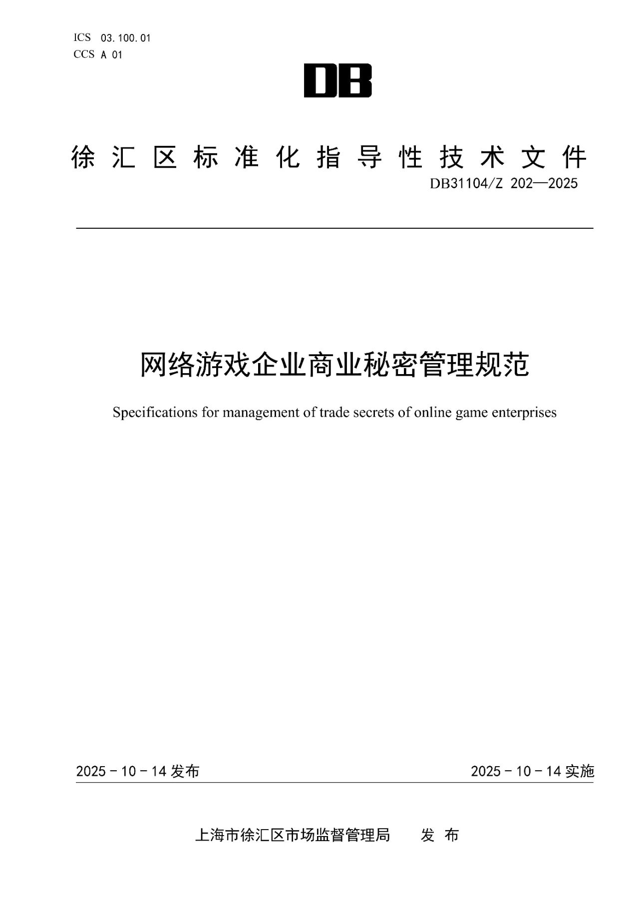 全国首个网络游戏领域商业秘密保护标准发布。劳动报记者陆燕婷 摄影 10月14日,《网络游戏企业商业秘密管理规范》正式发布实施,作为全国首份网络游戏领域商业秘密管理规范的标准化指导性技术文件,该文件在上海市市场监管局的支持和指导下,由徐汇区市场监管局联合上海市标准化协会、徐汇区游戏企业版权保护联盟共同起草,标志着徐汇区在知识产权保护方面迈出关键一步,为徐汇区打造国家知识产权保护高地建设注入强劲动力。 首次系统界定商业秘密的特殊范畴 长期以来,商业秘密保护存在“通用规范性多、行业适配性弱”的困境。而当未公开的角色泄露,当核心玩法设计被提前曝光,网络游戏企业又难以守护自身的“创新命脉”。 徐汇区市场监督管理局综合执法大队在进行网络游戏企业商业秘密管理规范案例分享时,披露了“董某侵犯商业秘密案”。当事人董某为江苏某校的在校学生,其利用境外非法用户提供的OSS链接,借助服务器漏洞,查阅下载某知名游戏企业未公开发布的游戏文件。文件为“2022年下半年游戏美术类工作述职作品集”,包含游戏人物形象、环境场景等经营性信息。获取涉密内容包括游戏人物形象设计、游戏环境场景图纸、游戏场景交互设计方案、游戏玩法概念图等。董某非法获利1513.5元。 上述案件中,当事人董某的行为构成了《中华人民共和国反不正当竞争法》(2019年版)第九条第一款第(一)项“以电子侵入手段获取权利人的商业秘密”之规定,徐汇区市场监管局对董某作出没收违法并予以罚款的行政处罚。 网络游戏企业商业秘密管理规范案例分享。劳动报记者陆燕婷 摄影 徐汇区市场监管局相关负责人指出,游戏“剧透”是近年游戏行业顽疾,严重打击创作者热情,影响游戏产业的健康发展。 据介绍,此次发布的《网络游戏企业商业秘密管理规范》,作为全国首个针对网络游戏行业的标准,精准聚焦网络游戏行业特性,首次系统界定了网络游戏企业商业秘密的特殊范畴,将经营信息细化至未公开角色名称、技能特效、动态动画等研发内容,技术信息则涵盖游戏开发技术、核心设计文档、源代码和版本控制资料等,并建立密级划分与动态调整机制,通过标准化手段为网络游戏企业提供一套制度化、全周期的商业秘密保护实施方案,也为数字文创领域提供了可借鉴的标准化样本。 “标准充分考虑了游戏领域技术和经营信息可能涉及的保护内容,解决了行业中长期存在的商业秘密属性认定难的痛点,使得我们游戏企业能够从被动维权迈向主动完善企业内部商业秘密保护体系,守住核心竞争优势。”某游戏企业负责人表示。 从“被动维权”转向“主动防护” 近年来,徐汇区游戏产业蓬勃发展,聚集了米哈游、鹰角、莉莉丝等国内外知名的游戏企业,精品游戏迭出,游戏人才精英集聚。与此同时,网络游戏企业在知识产权保护方面的需求也日趋增长。今年“4·26”世界知识产权日,徐汇区市场监管局联合徐汇区法院、徐汇区检察院、徐汇公安分局等部门发布了全国首份面向网络游戏行业的商业秘密保护指引,在细化游戏行业商业秘密的范围、破解游戏行业商业秘密定损难题等方面提供了初步解决方案。 此次发布的《网络游戏企业商业秘密管理规范》则在此基础上进一步升级成标准化指导性技术文件,为网络游戏行业筑牢标准根基,推动企业从“被动维权”转向“主动防护”。 《网络游戏企业商业秘密管理规范》将行政监管要求与企业内部管理深度融合,明确市场监管部门在侵权查处中的衔接流程,推动“企业主责、监管引导、司法保障”的协同治理,为破解商业秘密“取证难、维权慢”问题提供了上海方案。 “此次标准的制定以企业实际需求为引领,从前期调研到条款起草,再到后期论证,企业全过程参与,是政企协同推进标准落地的创新典范,在实践中探索出了‘企业提需求、政府搭平台、专业做支撑’的标准化工作新模式。”参与到此次标准制定过程的某企业负责人如是说,这种深度协同模式让标准更贴合行业实际,大幅降低了企业落地难度,让抽象的“保密要求”真正转化为可执行、可落地的操作指南。 《网络游戏企业商业秘密管理规范》全文