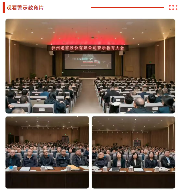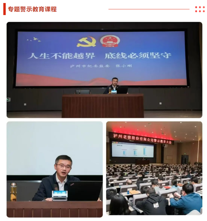 为深入贯彻落实全面从严治党战略方针,持续深化党风廉洁建设和反腐败工作,进一步增强全体党员干部职工纪律意识、规矩意识,10月30日下午,泸州老窖股份有限公司组织召开警示教育大会,泸州市纪委监委第三纪检监察室主任张小刚与会指导并讲授专题警示教育课程,公司党委书记、董事长刘淼出席会议并作重要讲话。会议由公司纪委书记陈学军主持,设主会场1个、分会场30个,超5000名干部职工通过线上线下方式参会。