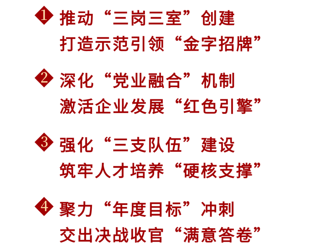 杭军充分肯定了公司“三岗三室”创建工作取得的明显成效,希望公司各党组织统一思想、凝聚共识,以“三岗三室”创建为抓手,推动党建工作与生产经营深度融合,为圆满完成全年目标任务注入强大动力。