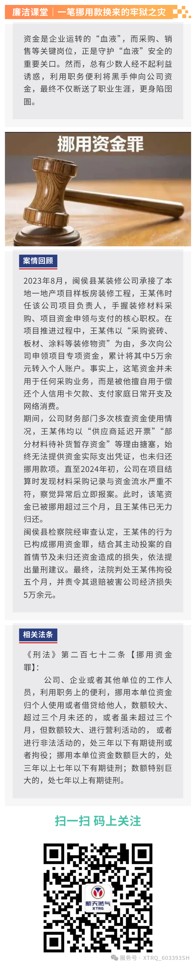 廉洁课堂 | 一笔挪用款换来的牢狱之灾