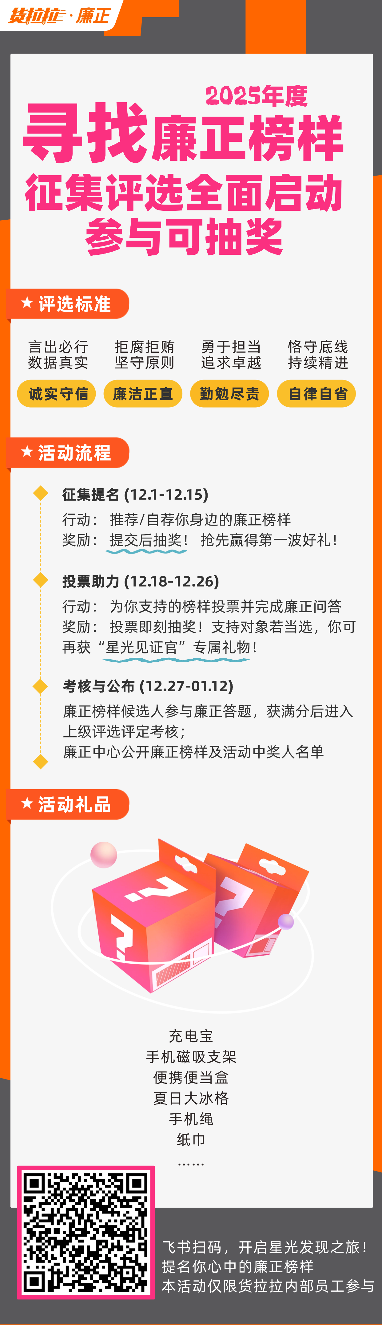 货拉拉正式启动 | 2025年度廉正榜样评选征集