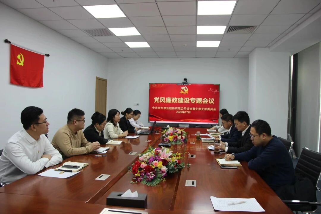 咨询事业部组织全体党员重温《中国共产党廉洁自律准则》等党内法规,围绕筑牢廉洁自律防线与发挥党员先锋模范作用进行深入研讨,并集中观看廉政教育片,以典型案例强化警示效果,引导全体党员干部筑牢思想防线,严守纪律规矩,为事业部高质量发展营造风清气正的良好生态。
