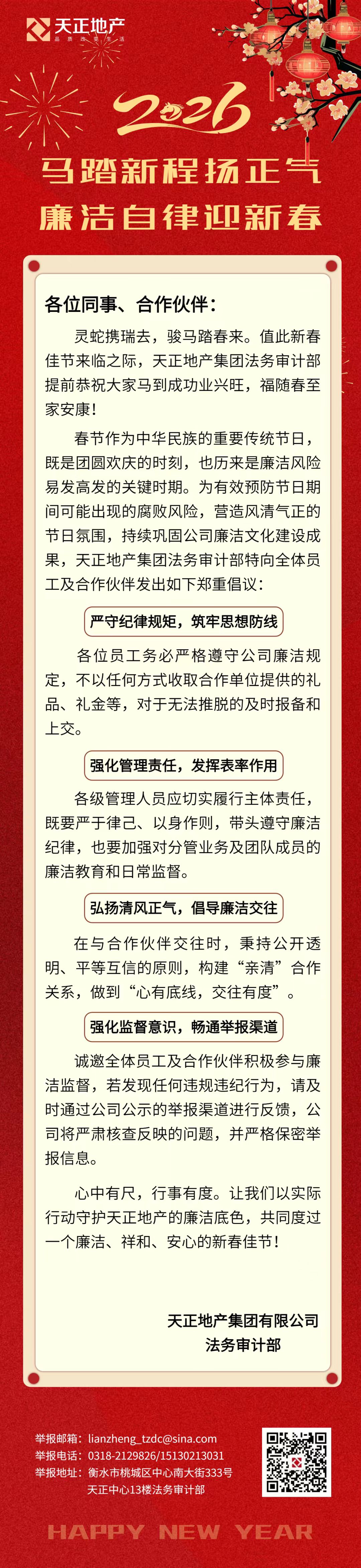 天正地产|马踏新程扬正气 廉洁自律迎新春