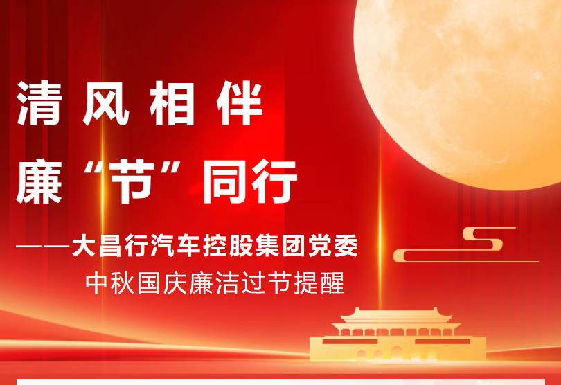 2025年中秋、国庆双节将至,为深入贯彻落实习近平总书记关于作风建设的重要论述,持续深化纠治“四风”,坚决防治“节日腐败”,营造风清气正、廉洁过节的良好氛围。大昌行汽车控股集团党委现就“双节”期间廉洁工作提醒如下