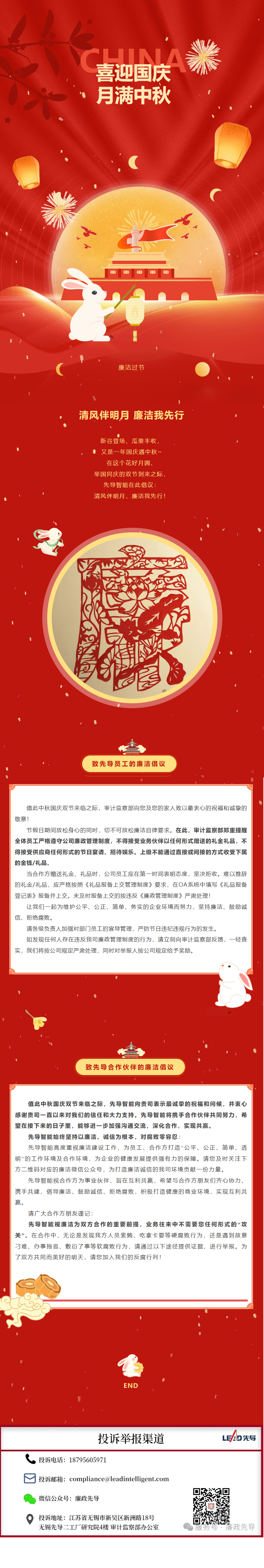 先导|庆国庆 迎中秋|国庆中秋廉洁公告