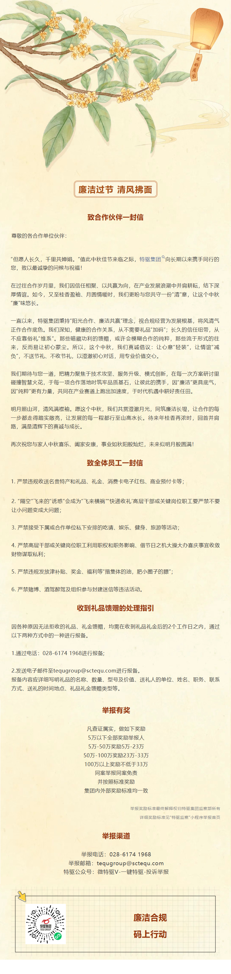 特驱集团|廉洁过节——给特驱合作伙伴及全体员工的一封信