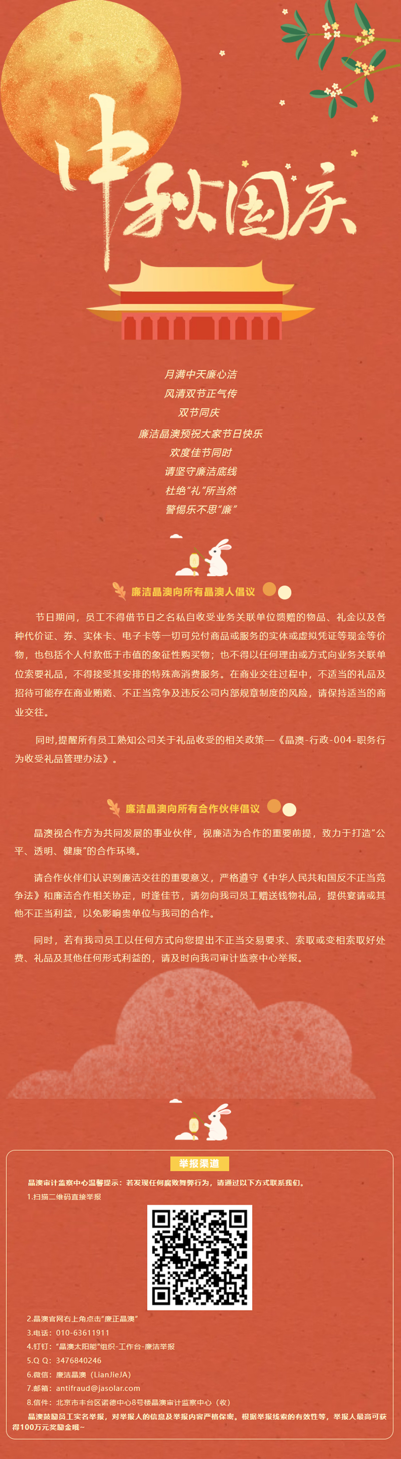 晶澳太阳能|节日“纪”语 ——迎中秋国庆,廉洁过节倡议!