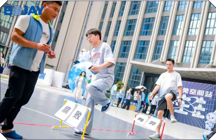 赛道上设置了“腐败”和“舞弊”的模拟障碍,参与者需灵活跨越才能抵达终点。跨过障碍,才能走上正道,简单的游戏也道破了廉洁从业无捷径,坚守底线是坦途的深意。 活动精彩瞬间 通过趣味十足的游园活动,让大家在欢声笑语中潜移默化领会了廉洁的重要性,自然而然地将廉洁准则融入到日常工作中。 此外,廉洁小游戏还准备了丰富的小奖品,让员工们在收获廉洁新认知的同时,也切实感受到公司的暖心关怀与正向鼓励。 廉洁IP征名 为廉代言,一“名”惊人 形象介绍 廉洁IP形象整体为科技感机器人造型,核心设计包含三大廉洁符号。 其一,手持绿色 “廉洁盾牌”,直观传递守护寓意。 其二,胸前 “廉洁指数仪表盘”,指针满格指向绿色区域,代表诚信度100%。 其三,头盔顶部设“红、黄、绿三色警示灯”,分别对应 “廉洁警诫”、“风险提示”、“合规达标” 状态,赋予了形象动态文化表达功能。 廉洁IP征名 本次廉洁活动月特别发起了廉洁IP征名活动,以大家的鲜活创意为廉洁文化注入新活力。 大家脑洞迸发、巧思云集,纷纷为可爱的廉洁IP形象投递专属命名:廉BoBo、廉小杰、博洁君等一个个充满创意的名字,既贴合博杰特色,又传递廉洁理念。 经过线上投票和线下评审团综合评选,最终“廉BoBo”脱颖而出。廉为姓,寓意廉洁,BoBo为博杰英文Bojay的前两位。廉BoBo既与博杰形成谐音呼应,又自带萌感,成为集体认可度最高的选择。 未来,这个凝聚着集体智慧的IP形象,将成为博杰廉洁文化传播的重要使者,持续为博杰的廉洁生态注入新力量。